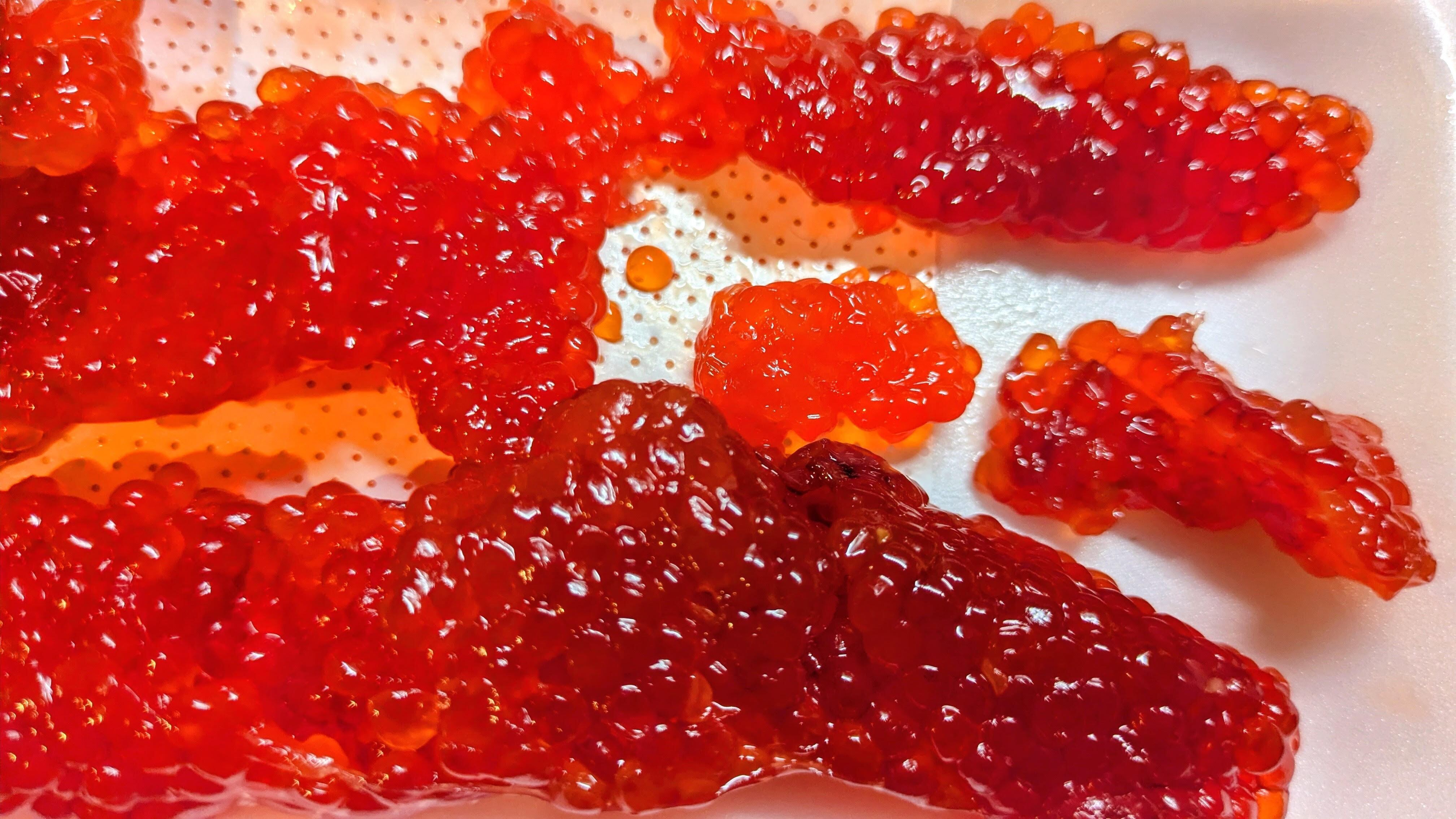 加工食品になりますので、解凍後そのままお召し上がり下さい。イクラなどに加工して食べるものではありません(以前お湯でほぐした方がいたので念のため…)