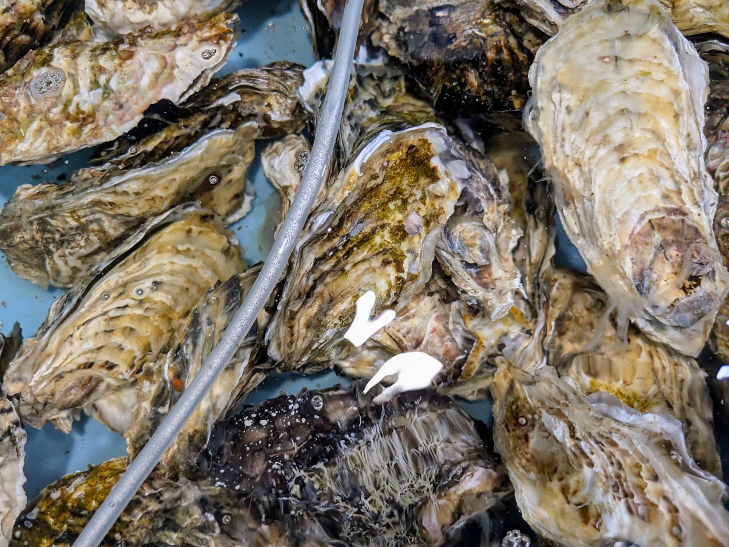 三陸産の殻付きカキ、1個の値段です。