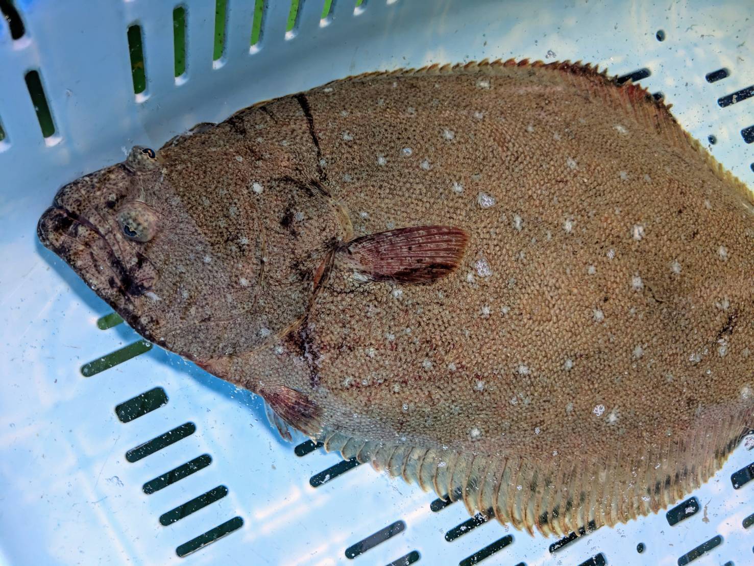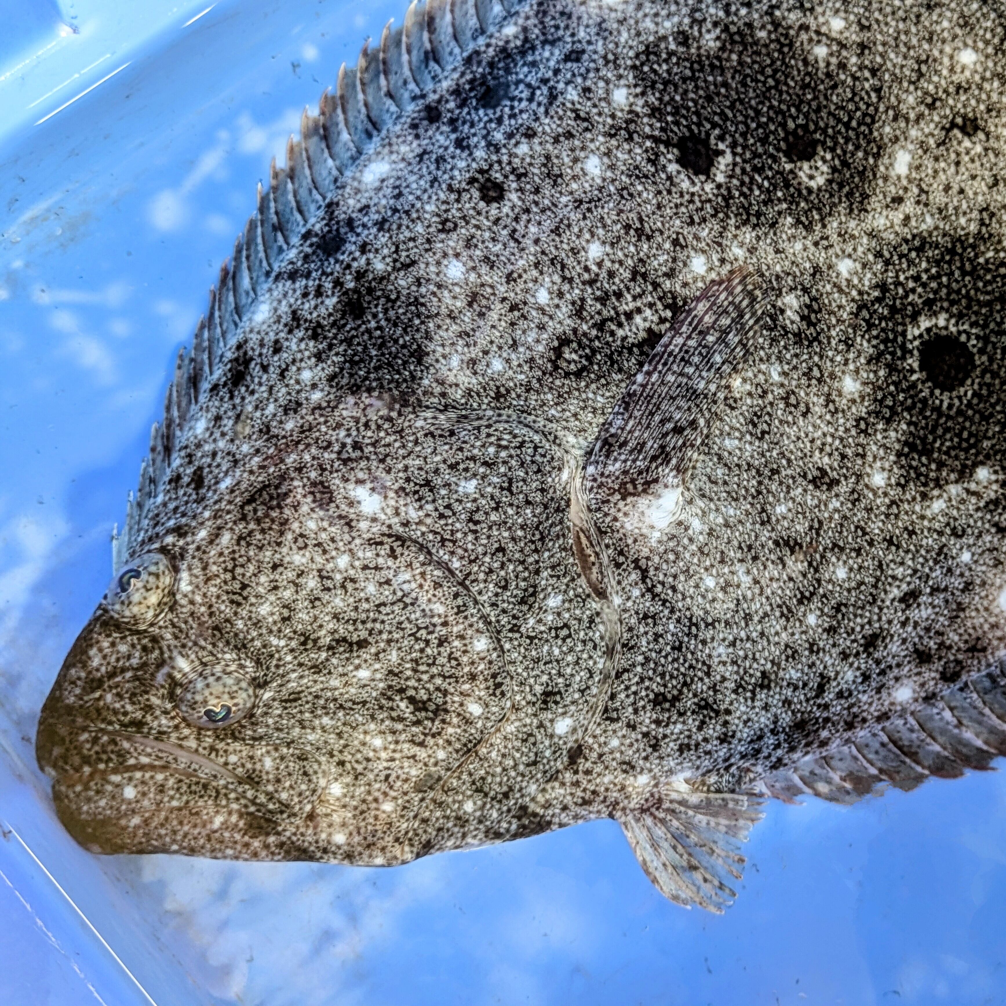 いわて北三陸、八木(やぎ)魚市場どれのヒラメです。