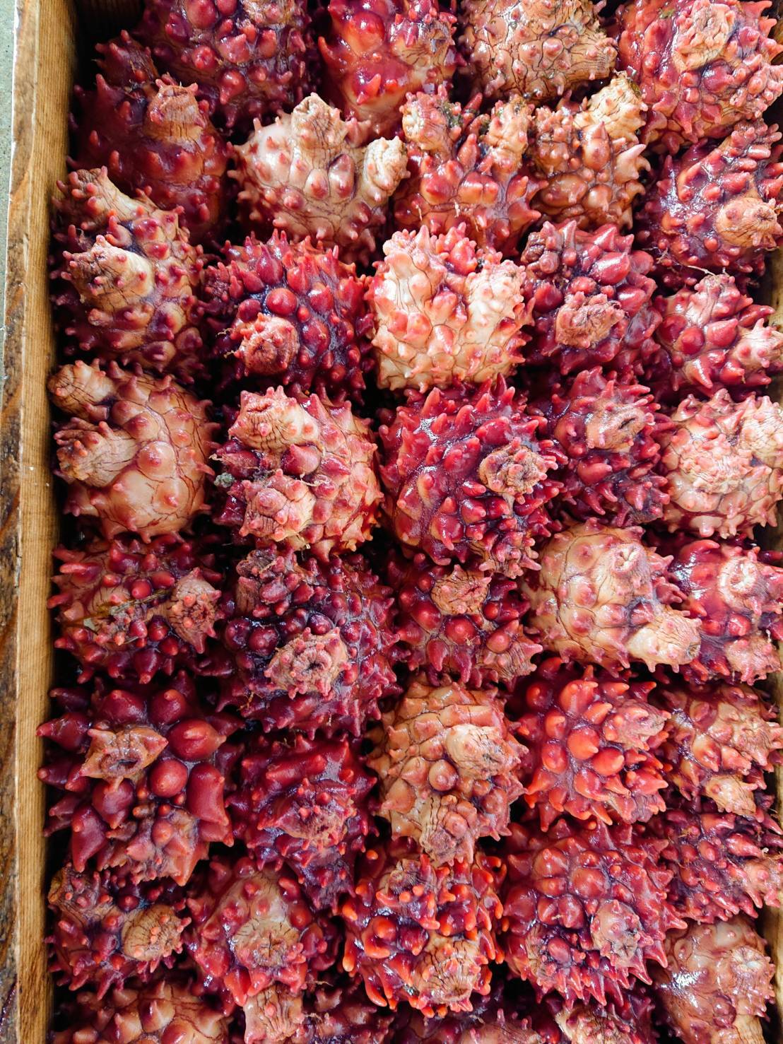 ・いわて洋野町種市産、南部ダイバーが最大水深25mの深場で潜って水揚げした活の天然ほやです(^^)